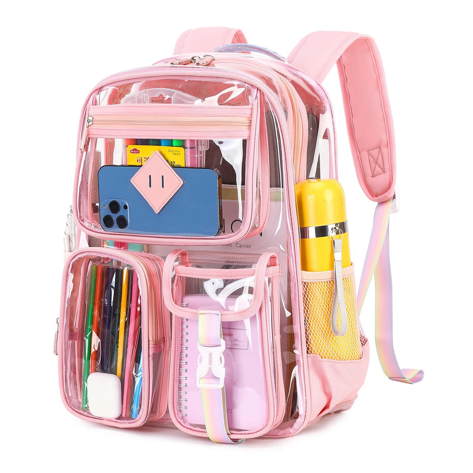 best clear backpack overall: clear backpack, heavy duty pvc transparent backpack with reinforced straps, see through multiple pockets. Don't buy a clear backpack before reading. All the clear backpacks we've tested. Under armour youth clear backpack. our team of experts has selected the best clear backpacks out of hundreds of models. but we’re here to share that cute clear backpacks are out there and they’re even functional to boot.